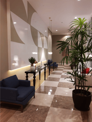 Sensor de presença nos halls e escadasÁreas comuns equipadas e decoradas